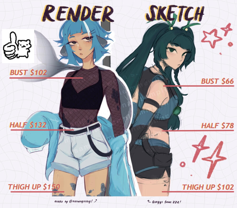 this commission type is meant to be character-focusedadditional character (2 per canvas) +90%